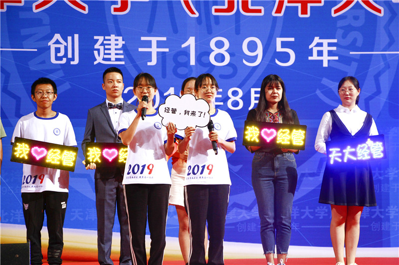 8月30日晚7时30分,管理与经济学部2019级迎新典礼于卫津路校区体育馆隆重举行。互联网连续创业者、风之岩等品牌创始人、天津大学1990级技术经济专业校友张光明,管理与经济学部党委书记马寿峰,主任霍宝锋,副主任杨宝臣、毛照昉、熊熊、冯楠,党委副书记袁婷、李庚,各系所主任、党支部书记以及教师代表出席了此次活动。此次典礼由2019级管理科学与工程专业硕士新生刘铭帅和2017级财务管理专业本科生田烁主持。金秋送爽,这一刻,1811名本硕博新生相聚北洋。