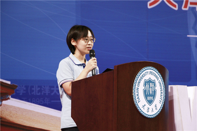 2019级经济管理实验班罗秋莲代表本科新生发言,她说,是天大人让她发现青年力量的伟大,是经管人让她相信自己也可以铸就卓越。她郑重宣誓,作为新时代青年,定将立天大志向、展天大胸襟、承天大责任。