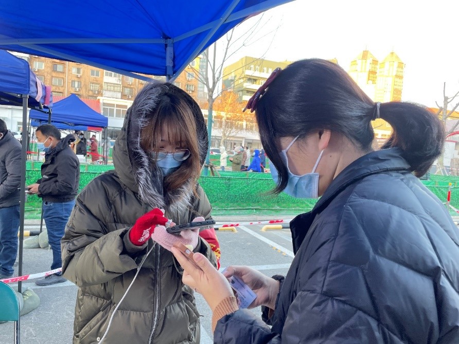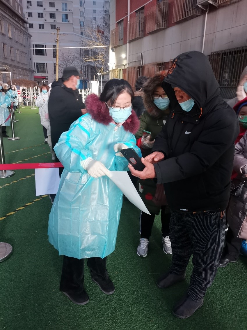 农历的腊月初八,天寒地冻,在和平区新星小学筛查点,排队等候做核酸的人们总能看到一位姑娘,正在热情的为排队的居民服务。她就是天津大学2020级非全日制MPAcc青年党员王琳同学。1月10晚到社区报道,领取任务,在新星小学筛查场所负责查验证件、维持秩序。这天是传统的腊八节,王琳没有选择在温暖的家中和家人团聚,而是在数九寒风中,对居民一遍遍的说到:“您好!请问您带身份证和手机了吗?您用手机先扫一下粉色的补充登记二维码,输入身份证号和相关信息,然后扫描白色的报道二维码,绑定信息。” 基层是疫情防控的关键环节,关键时刻在这场看不见敌人的战役面前,以王琳为首的党员们迎难而上,忘我工作,凝聚起磅礴力量,成为社区疫情防控阻击战的“主心骨”和先锋队!