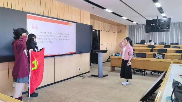 随后,全体党员面对鲜红党旗,郑重举起右拳,重温入党誓词。“我志愿加入中国共产党……随时准备为党和人民牺牲一切,永不叛党。”铿锵有力的誓言在教室内回荡,表达了同志们对党的无限忠诚和为社会主义事业奋斗终身的坚定决心。