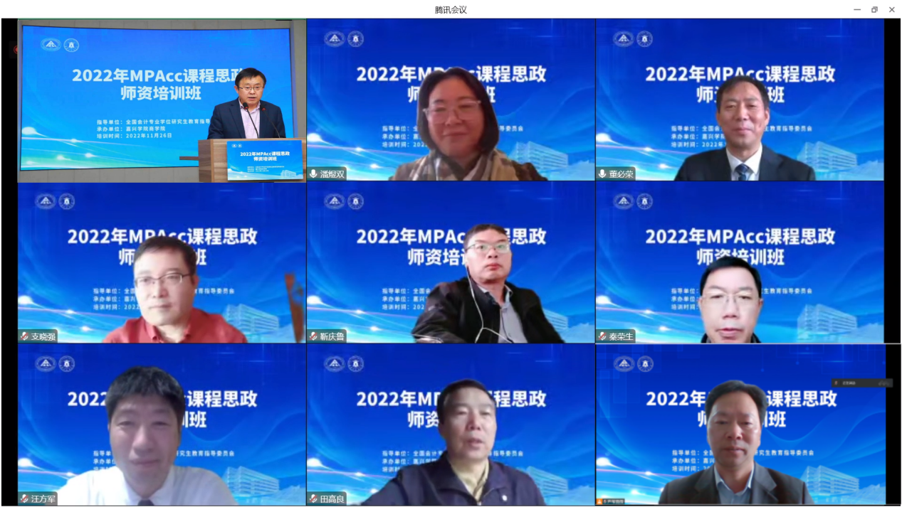 2022年11月26日,由全国会计专业学位研究生教育指导委员会指导,嘉兴学院商学院承办的2022年MPAcc课程思政师资培训班圆满举办。