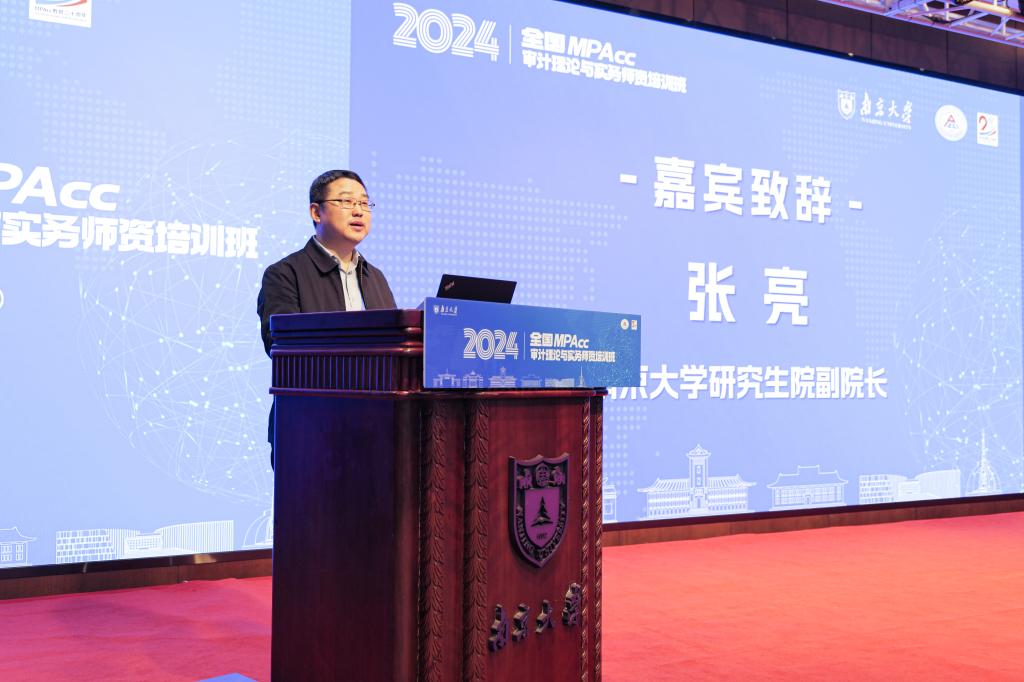 教育部“长江学者奖励计划”特聘教授、南京大学研究生院副院长张亮教授首先致欢迎辞。恰逢南京大学122周年庆即将到来之际,张亮教授向各位嘉宾、老师们介绍了南京大学的悠久历史和辉煌成就,以及南京大学MPAcc项目在人才培养、师资力量、社会服务等方面的成果,全面展示了文理科综合性大学MPAcc特色培养的探索之路。最后,他对全国会计硕士专业学位教育指导委员会多年来的关心指导,向诸多兄弟院校多年来的支持和帮助,表示衷心的感谢,并祝愿本次培训班圆满成功。