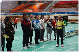开赛前,任达老师为比赛致辞时提出:“赛出风格,赛出水平,赛出友谊”的希望,同时提醒同学们要注意比赛中的安全问题。本次比赛共有3个项目,男单、女单和混双。赛制采取一局29球制,满15球则双方互换场地。同时成立了裁判组及仲裁委员会以保障比赛的公平公正。