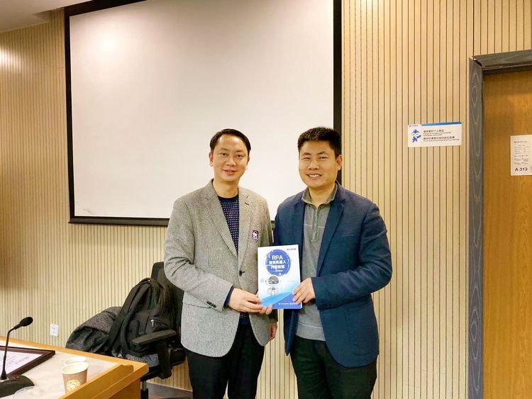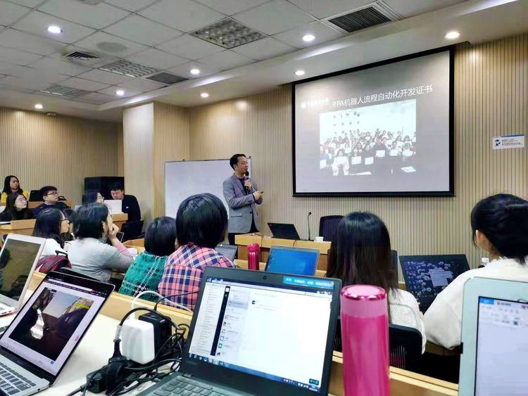 随后,程平教授分别为同学们介绍并展示了他开发的财务机器人“小蛮”,以及基于UiPath平台的全流程财务自动化程序,并亲自指导同学们进行财务机器人模拟操作。程老师态度亲和,语言幽默,十分“接地气”。