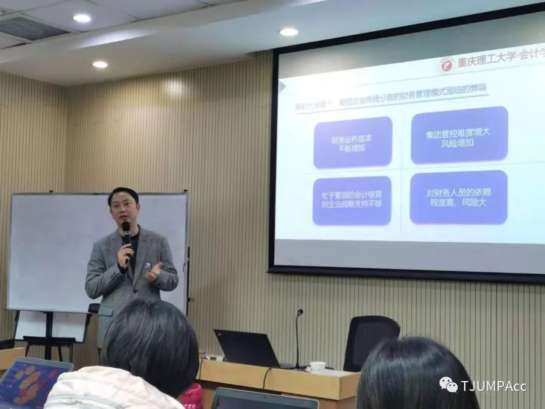 受天津大学管理与经济学部会计与财务管理系邀请,重庆理工大学会计学院副院长兼MPAcc教育中心主任程平教授来到天津大学,开展了以“’互联网+会计’智能财务共享与财务机器人开发”为主题的讲座。本次讲座于12月14日上午在卫津路校区25教学楼举行,由天津大学管理与经济学部郑立群老师主持,2019级MPAcc全体学生和会计与财务管理系的同学参加了讲座。