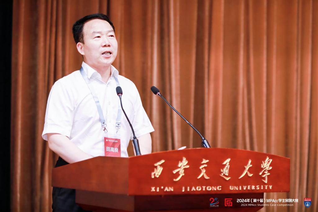 闭幕式由西安交通大学管理学院副院长田高良主持。西安交通大学研究生院副院长龙建纲首先致辞。他表示,案例大赛通过竞赛牵引,营造实践环境,推行知行合一的教育育人新途径。作为本届案例大赛承办单位,他希望能够通过案例大赛,持续推动会计硕士专业学位研究生人才培养,实现实践育人、竞赛育人的良性生态环境发展。
