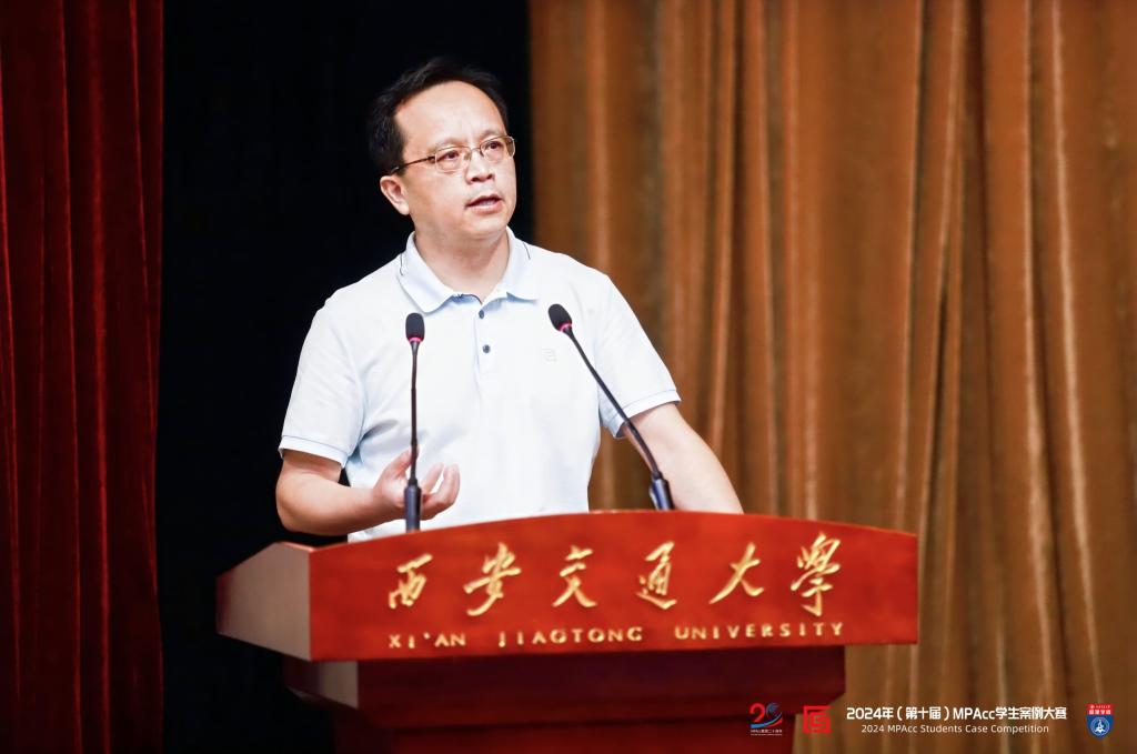西安交通大学管理学院党委书记马晓彬致开幕式欢迎词。马晓彬书记对参会领导、嘉宾和参赛师生表示热烈欢迎,他强调案例大赛是理论课堂和实践能力培养之间的通道,通过以赛促教、以赛促学的方式,使会计硕士专业学位人才培养和实践紧密结合,不断提升人才培养质量和教学水平。