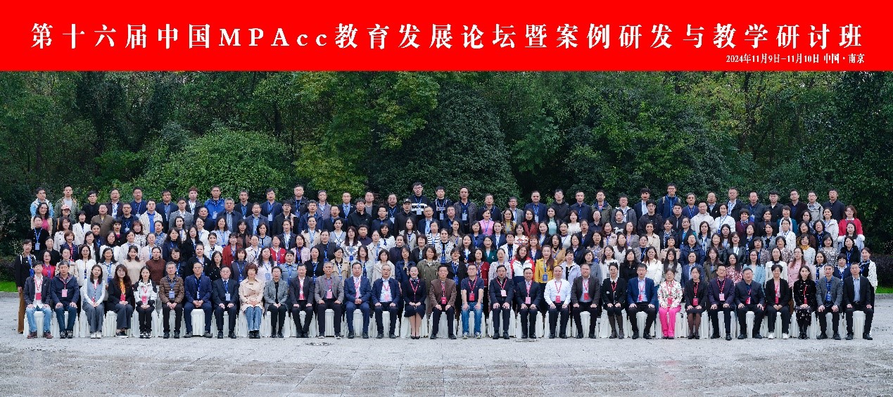 11月9日至10日,由全国会计专业学位研究生教育指导委员会指导、中国人民大学商学院主办、南京财经大学会计学院承办的第十六届中国MPAcc教育发展论坛暨案例研发与教学研讨班在江苏省南京市成功举办。全国会计专业学位研究生教育指导委员会副主任委员、中国人民大学王化成教授;全国会计专业学位研究生教育指导委员会秘书长,中国人民大学党委常委、副校长支晓强教授;担任全国会计专业学位研究生教育指导委员会委员的中国财政科学研究院党委委员、副院长徐玉德研究员和中南财经政法大学张敦力教授;担任全国审计专业学位研究生教育指导委员会委员的沈阳农业大学党委常委、副校长孙光国教授和山东大学路军伟教授,暨南大学饶品贵教授等领导和嘉宾莅会指导。来自全国近150家MPAcc 培养单位的约200位专家参会,共同分享案例开发与教学经验、增进交流合作、碰撞智慧火花。